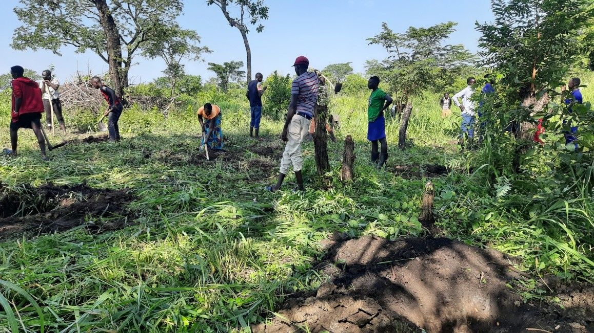 Trotz der Krise führen die Salesianer mit den Begünstigten in der Flüchtlingssiedlung Palabek die landwirtschaftlichen Aktivitäten weiter. Rund 40 Frauen und Männer helfen im Garten mit und pflanzen Mais und Bohnen an. Die geernteten Lebensmittel werden untereinander aufgeteilt – davon können die Geflüchteten wie auch die lokale Bevölkerung profitieren.