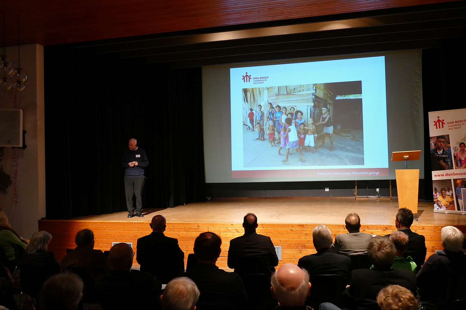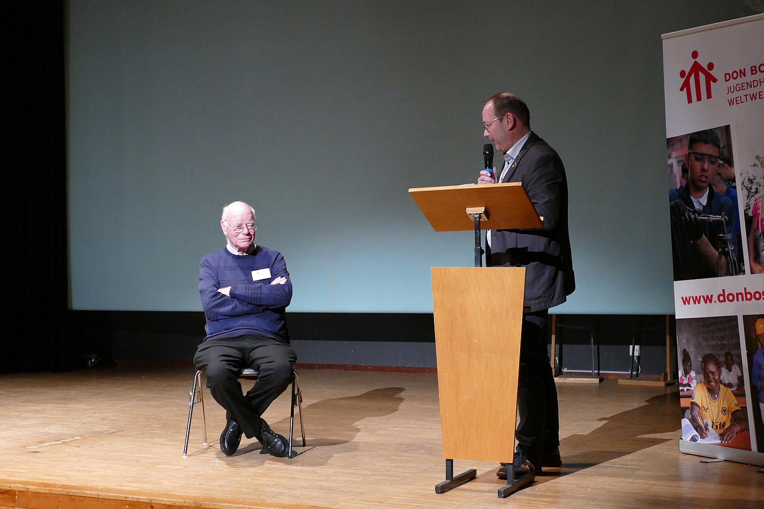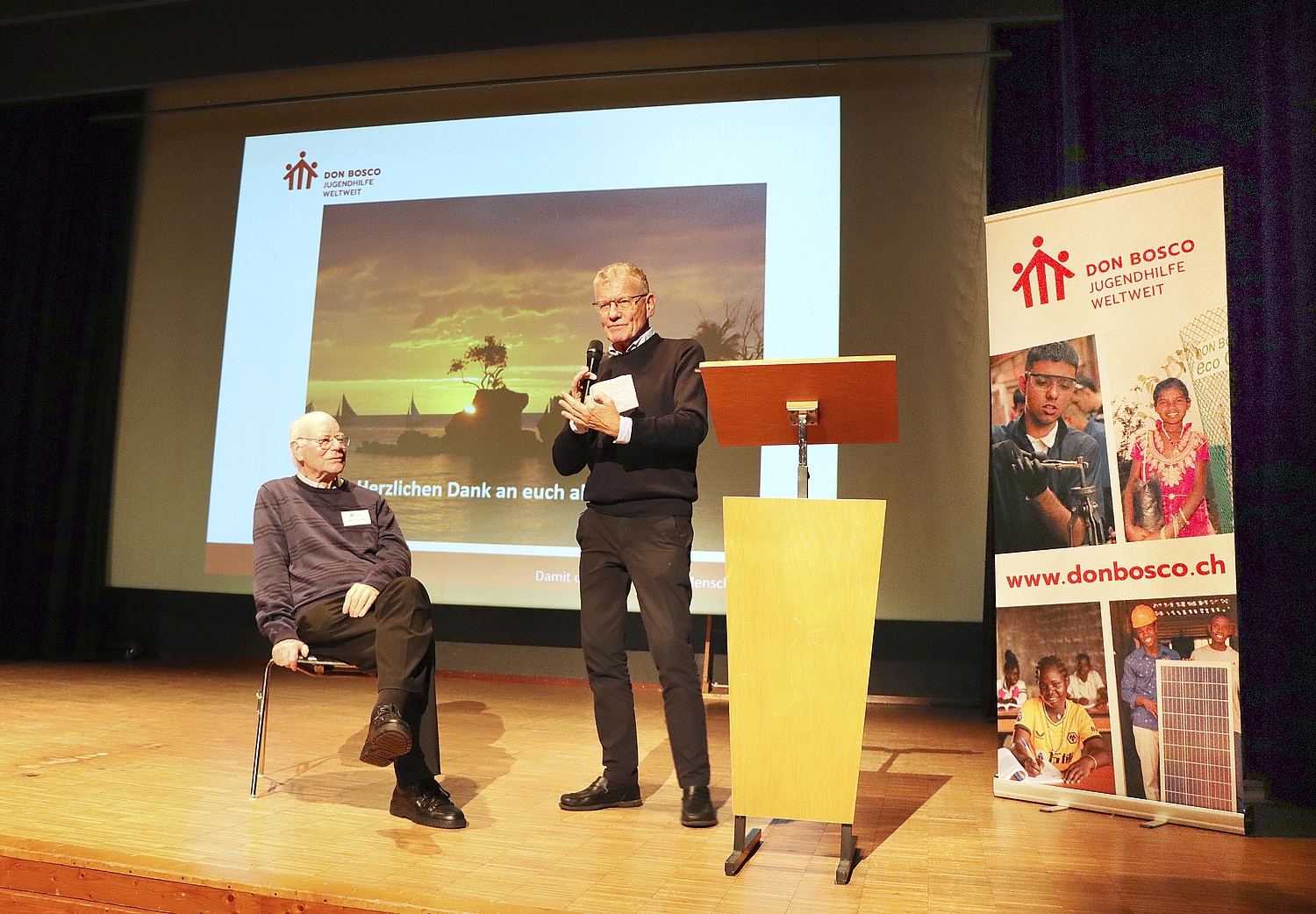 In einer feierlichen und berührenden Zeremonie im Theatersaal des Don Boscos in Beromünster kamen am 21. Oktober zahlreiche Weggefährt/innen, Spender/innen sowie Freund/innen zusammen, um Pater Rogger für sein unermüdliches Engagement für die Jugend überall auf der Welt zu danken und zu ehren. Gemeinsam wurde auf 30 Jahre bedingungsloses Engagement, harte wie lustige Momente zurückgeblickt. «30 Jahre habe ich dafür gearbeitet – nun ist es schön, dass ich es weitergeben kann – noch bevor ich zusammenfalle!», meinte Pater Rogger an jenem Tag.