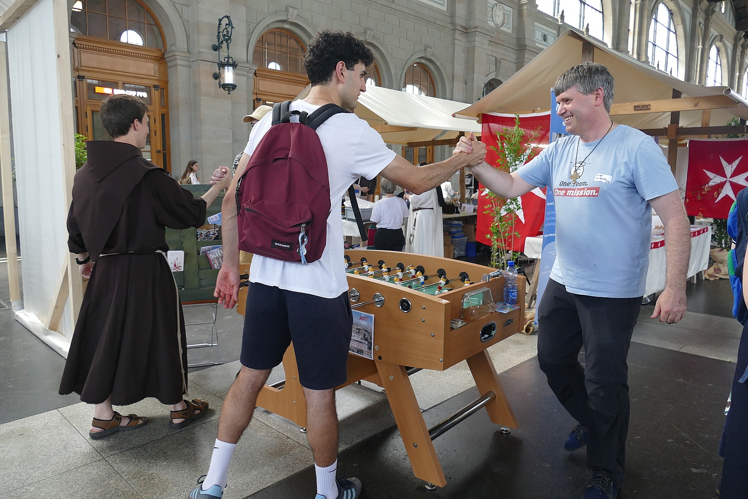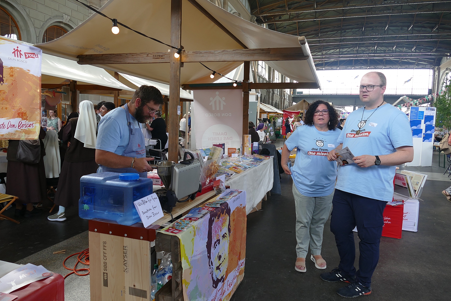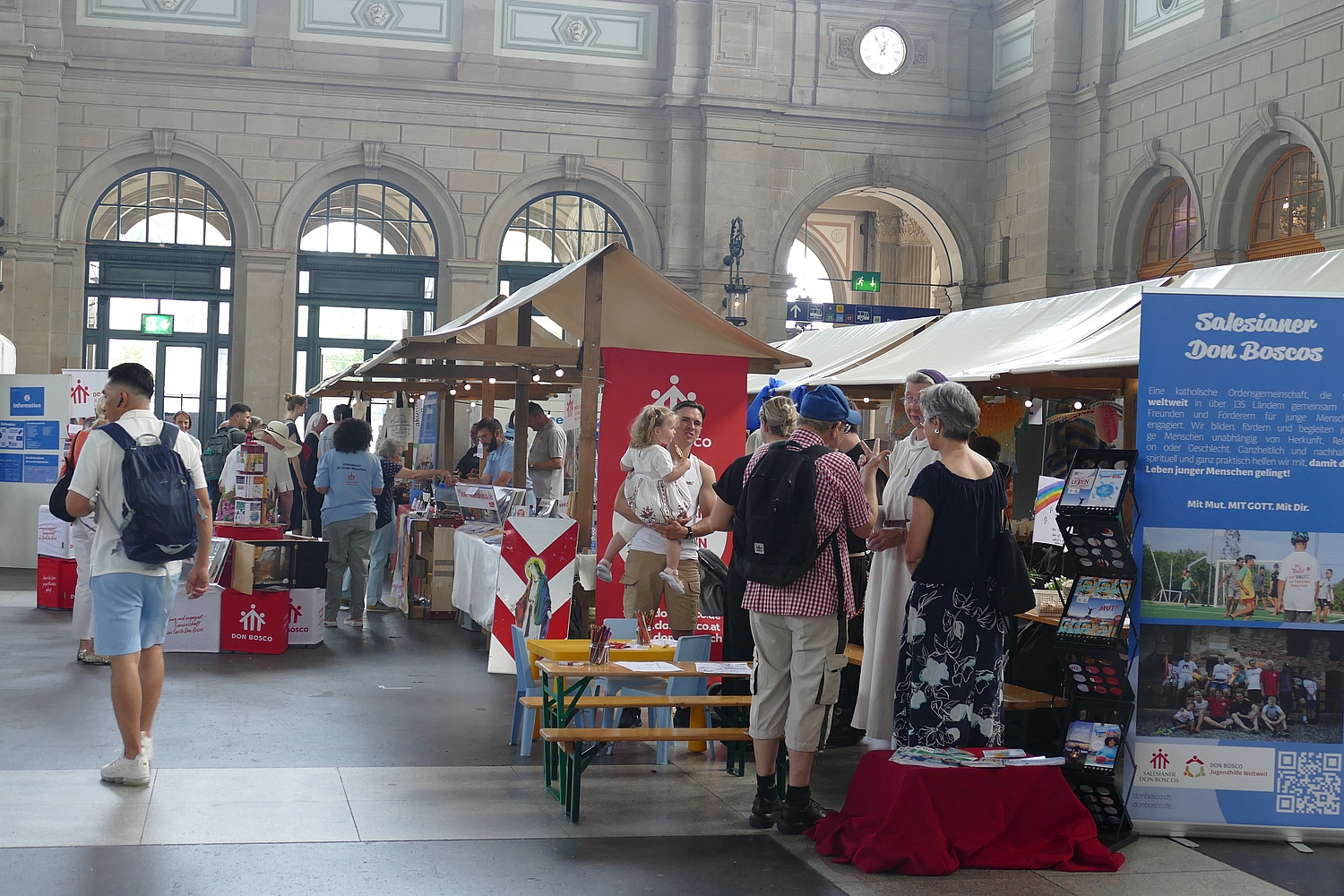 Der Klostermarkt im Hauptbahnhof Zürich ist ein lebendiger Treffpunkt für Genuss- und Kulturfreunde. Direkt im Herzen des Bahnhofs, eingebettet zwischen internationalen Reisenden und Pendlern, locken über 30 Stände der in der Schweiz tätigen Klostergemeinschaften mit einer Mischung aus kulinarischen Köstlichkeiten, frischen Produkten und Kunsthandwerk. Auch wir von Don Bosco und der Jugendhilfe Weltweit waren anwesend. Hier können Besucher inmitten des hektischen Bahnverkehrs ein Stück Schweizer Tradition in einer klösterlichen Umgebung erleben. Vom handgemachten Käse bis hin zu exquisiten Weinen – der Markt bietet lokale Spezialitäten und ein unverwechselbares Flair. Perfekt für eine kleine Auszeit oder ein schnelles, aber genussvolles Erlebnis, das den Alltag vergessen lässt. Wir kamen mit unzähligen Menschen ins Gespräch und konnten das Engagement und die Bedeutung von Don Bosco für die jungen Menschen in der Welt einem grossen Publikum näher bringen.