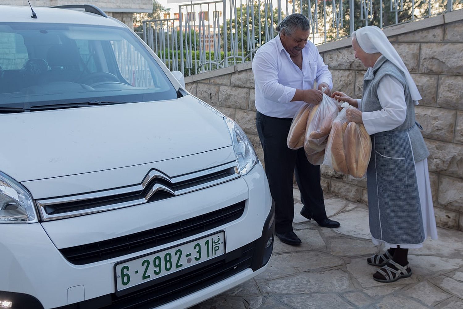 Mit einem Fahrzeug wird das Brot an die acht Sozialwerke geliefert und die 110 Familien können ihre Brote mit umweltfreundlichen Taschen in der Bäckerei abholen. Falls in Bethlehem die Bewegungsfreiheit eingeschränkt ist, finden die Salesianer Lösungen wie zu Corona-Zeiten: Die Weitergabe von Fenster zu Fenster.