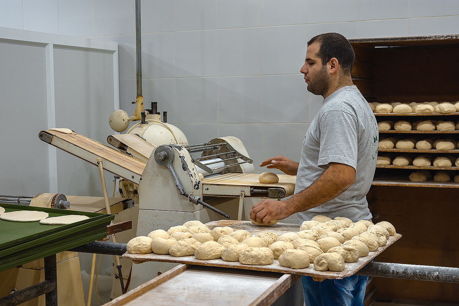 Bethlehem heisst übersetzt aus dem Hebräischen «Haus des Brotes». Passend zu diesem Namen führen die Salesianer Don Boscos in Bethlehem seit 1891 eine Bäckerei. Heute produziert diese täglich 2700 Brote und erfüllt viele wichtige Aufgaben: Die Bäckerei deckt die Verpflegung von allen Kindern, Jugendlichen und Angestellten, die direkt vor Ort in der Berufsschule und im Jugendzentrum ein und aus gehen. Sie versorgt zudem die lokale Bevölkerung mit Brot zu einem erschwinglichen, unterdurchschnittlichen Preis, bildet junge Bäckerinnen und Bäcker aus und engagiert sich für möglichst viele Bedürftige. Die Fotos stammen zum Beispiel aus der Corona-Pandemie, während der mehr als 3000 Menschen regelmässig mit Brot versorgt wurden.